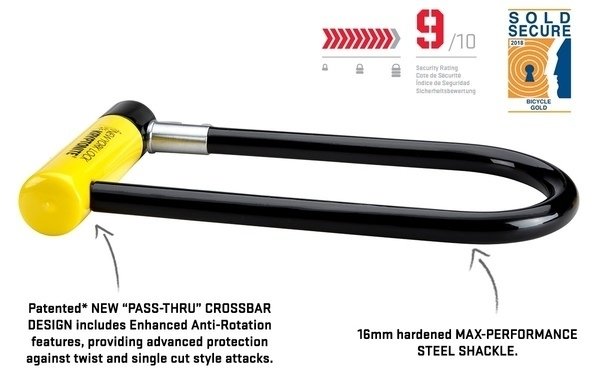 The Kryptonite New York LS is not only a pretty heavy-duty bike lock, but it’s also pretty massive, with an interior locking dimension of 4″ x 10.25″. Much like the Sigtuna, it’s also made of 16mm heavy steel, so it can withstand from some pretty intense attacks.