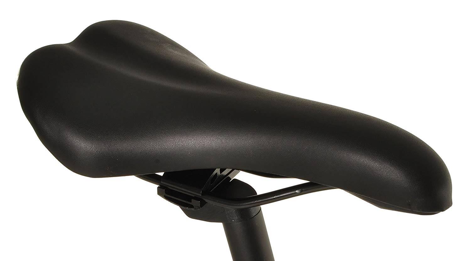 The position places you in an ergonomic upright riding position that takes the pressure off your joints. To make this position even more comfortable, the bike comes with a slim-cut saddle. The saddle has compression foam which pads the tailbone and rests on a suspension seat post. The suspension will absorb the bumps in the road and help you avoid numbness.