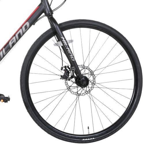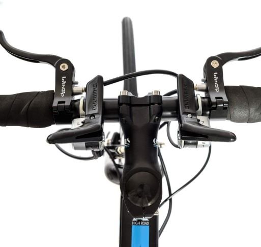 The Shimano thumb grip shifters are responsive and dependable, and the amount of versatility that the drivetrain provides makes the Hiland aluminum road bike a solid all-rounder.