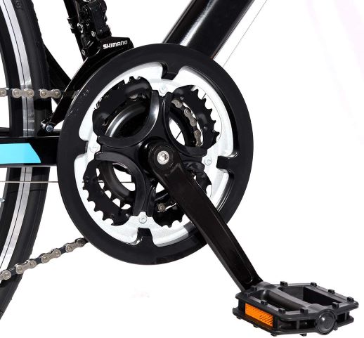 The bike is equipped with a 21-speed Shimano Tourney drivetrain, which provides it with a sizable amount of versatility. This does a great job of offsetting one of the most common and pronounced flaws that road bikes, in general, suffer from.