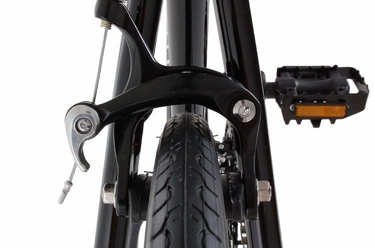 To better control your ride, the bike offers traditional dual-pivot type brakes. The brake pads that come with the bike can be a bit soft, but they are easy to replace. Based on the price of the bike, it is not surprising that you are unable to install disc brakes.