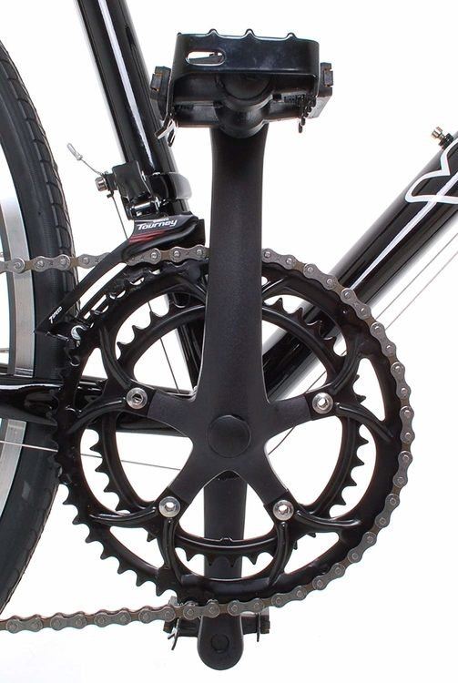 While the weight makes this bike easy to handle, the Triple 50/40/30 crankset does not hurt. The drivetrain offers 21 speeds using Shimano Tourney derailleurs. This number of gears ensures you can handle any road conditions when touring or commuting.