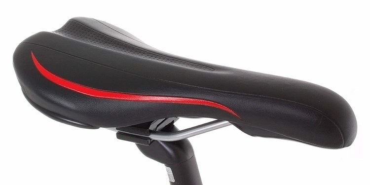 The saddle on this bike is larger than others on the list. The upright riding position requires this and the saddle has additional padding. If you find it uncomfortable, you can change the saddle with ease.